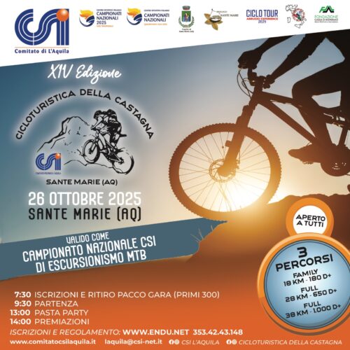 – Entrando sulla pagina dedicata alla cicloturista della castagna sul sito www.comitatocsilaquila.it, e seguendo le istruzioni dedicate alle iscrizioni per “Individuale e Multipla (*)” e quelle dedicate ai “Gruppi Sportivi (**)”, compilando i campi in ogni sua parte