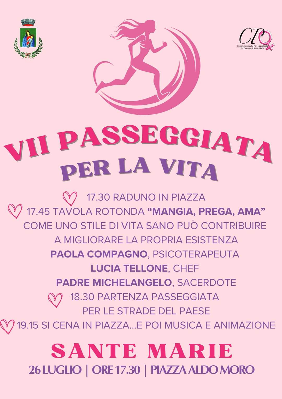 L'iniziativa promossa dalla Commissione Pari Opportunità di Sante Marie con il Patrocinio del Comune è in programma il giorno 26 luglio 2024.